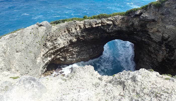 Gueule Grand Gouffre est un site incontournable pour les amateurs de photographie et de randonnée à Marie-Galante. Ce gouffre majestueux, creusé par la mer, offre un spectacle fascinant où la mer s'engouffre dans une arche naturelle, projetant des gerbes d'eau éclatantes sous les yeux des visiteurs. Le site est un lieu emblématique de l'île, parfait pour les paysages sauvages et la photographie. Les randonneurs peuvent explorer des sentiers escarpés le long des falaises, offrant des vues panoramiques sur l'océan. Les visiteurs sont encouragés à respecter l'environnement naturel fragile de l'île en emportant leurs déchets et en laissant le site tel qu'il est.